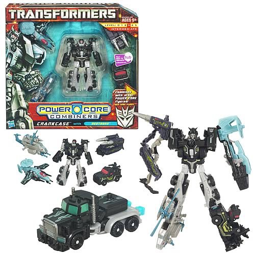 CRANKCASE didn't start off as a bully. He started off bitter, mean and small-minded, and the strength granted by the Power Core process made him capable of taking his misery out on others. His few moments of happiness all occur when he uses his incredible might against someone unable to fight back. Then he's right back to being miserable.Transformers Power Core Combiners Series Robot Action Figure - CRANKCASE Commander with 4 Destrons (Missile Carrier Drone, Attack Helicopter Drone, Spy Plane Drone and Assault Vehicle Drone)